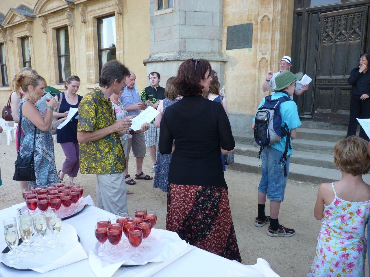 | 7:00-7:30 | Drinks reception: rose wine, fizzy white or non alcoholic fruit punch | All (outside on lawn if nice weather) |