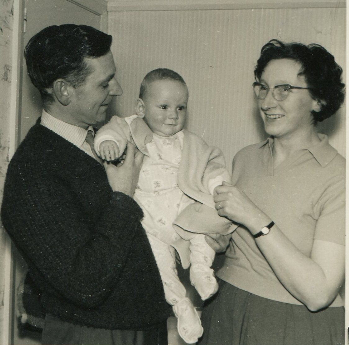 ‘This is how long I have known Andy’, says Jo Mackin, ‘I’m the baby its my christening!’